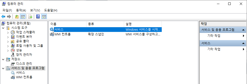 2. 서비스 및 응용 프로그램 -> 서비스 클릭
